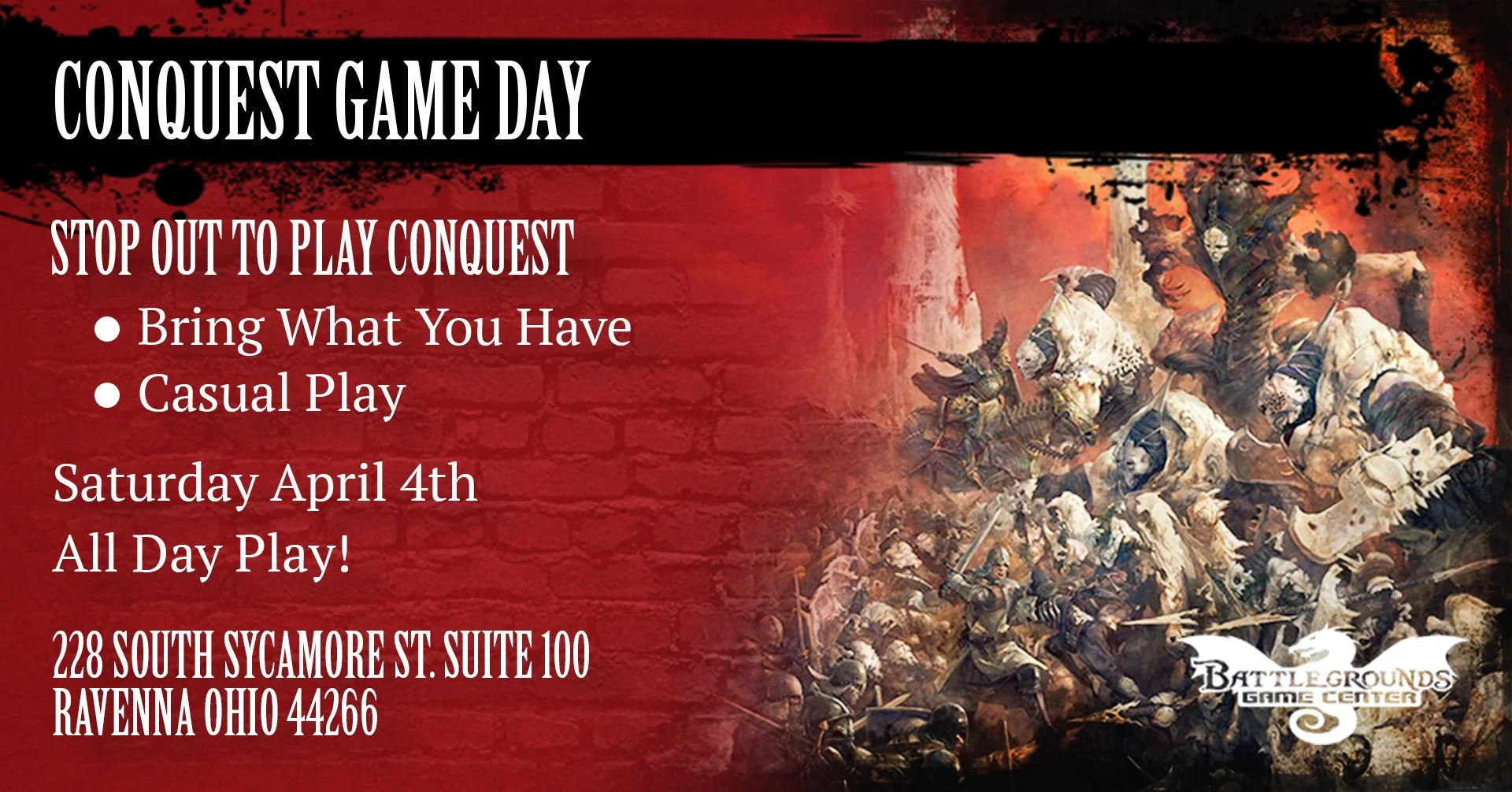 We offer the full tabletop gaming experience in Northeast Ohio. Including CARD games, hobby supplies and all your favorite tabletop miniature games like Warhammer 40k and more.
